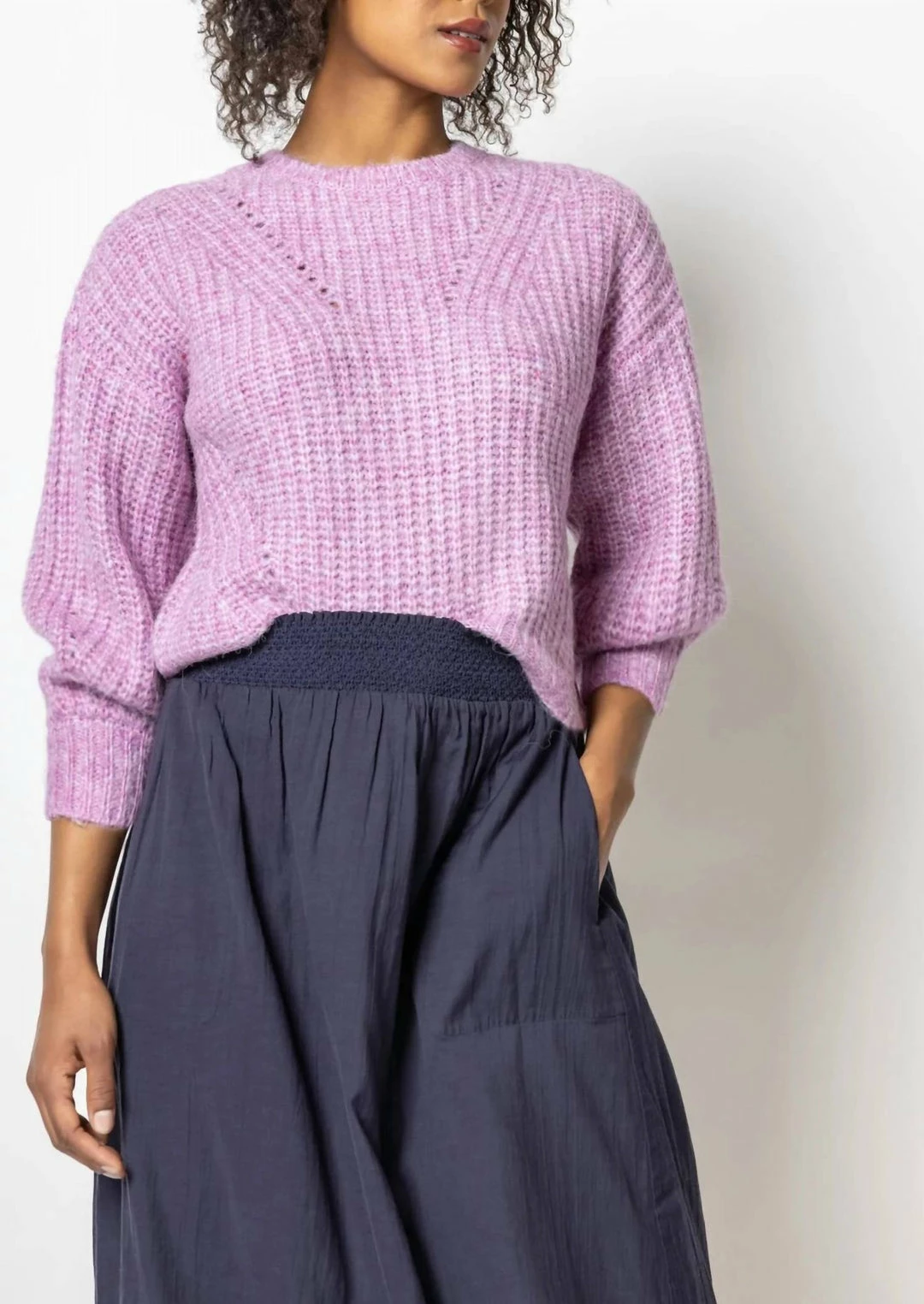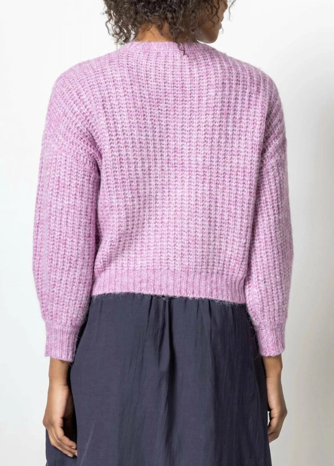 Dropped shoulders for an easy fit. Fuzzy, non-wool yarn.