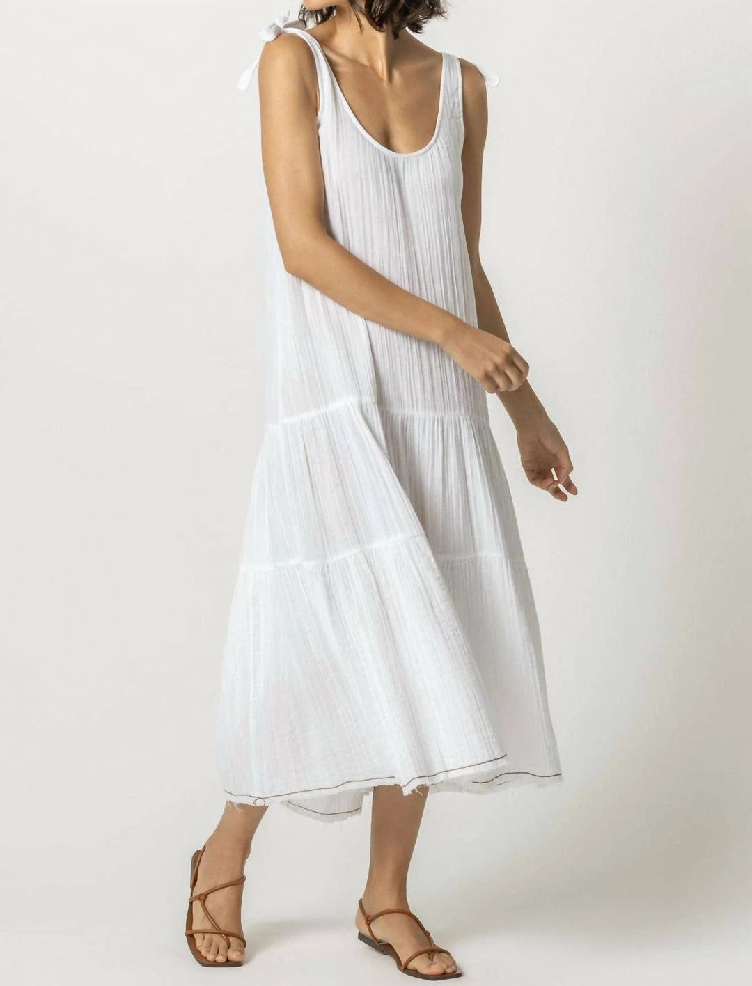 In our lightweight Double Gauze cotton fabric, this dress is simple, but full of detail. The ties at the shoulder are adjustable, making it easy to wear.��100% CottonLength – 48.25″ (size medium)Adjustable ties at shoulderModel wears a size smallMachine Wash Cold