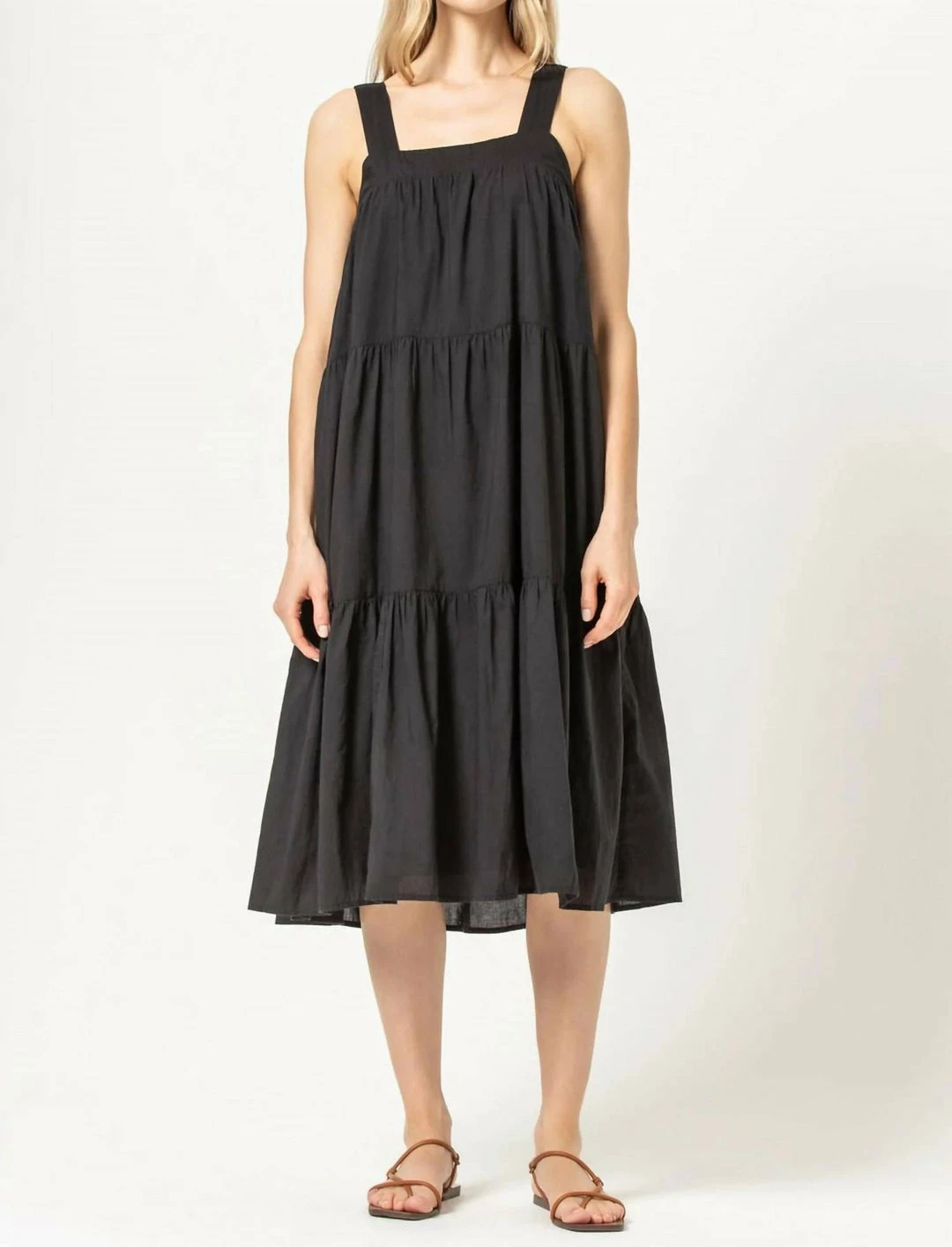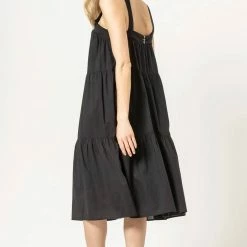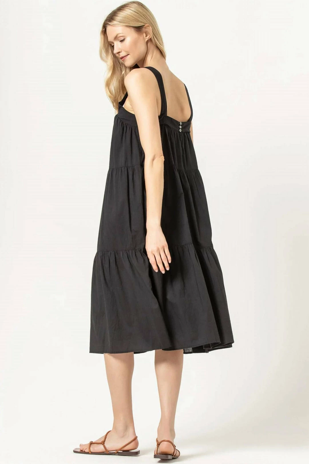 Peplum Seam Tank Dress features an adjustable straps and heavy shirring for fullness and movement.