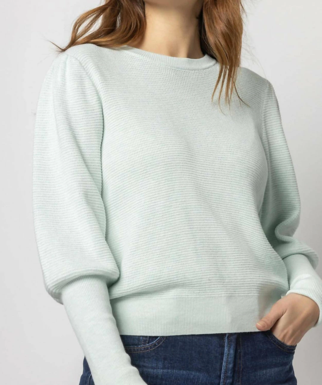 Puff Sleeve Crewneck Sweater100% CottonSkims the body, but not fittedMachine Wash Cold