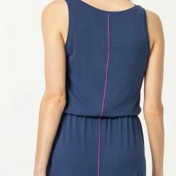 Fits True To SizeElastic waist gives shape to the bodyContrasting color piping on back, tall side slits, & rounded hemline