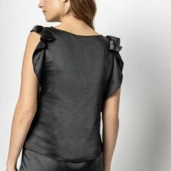 This Ruffle Sleeve Boatneck is a perfect staple for the season. Pair it with our wide leg pant��or with anything from denim to black pants for holiday festivities or a night out.100% PolyesterLength – 22.5″ (size medium)Model wears a size smallDry Clean