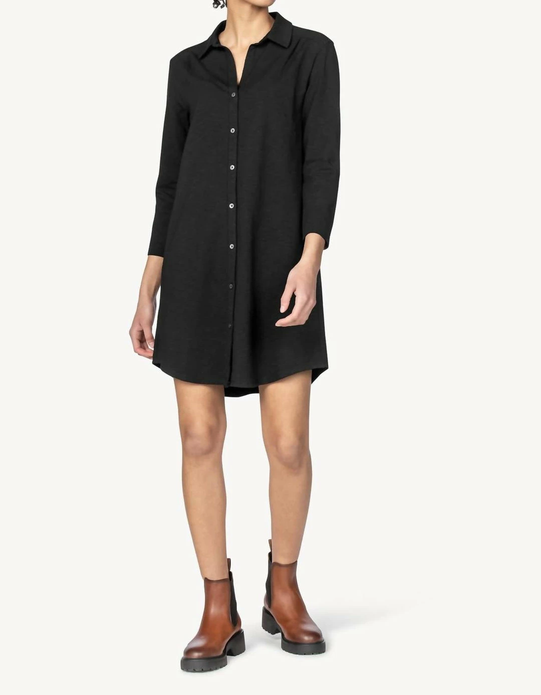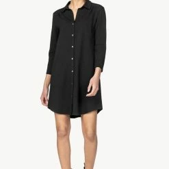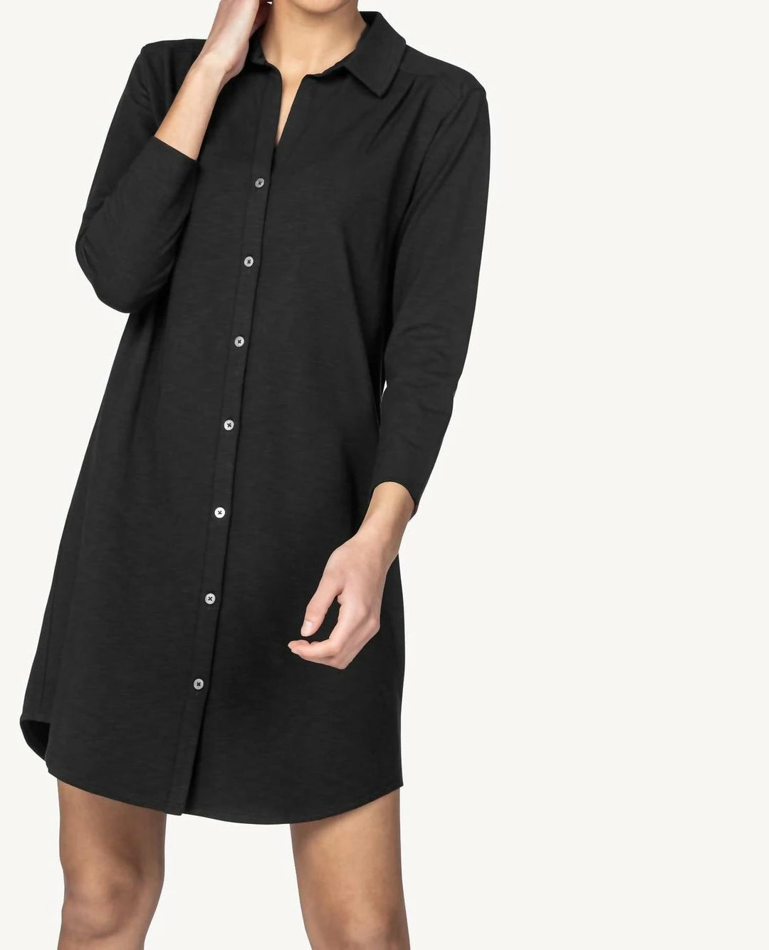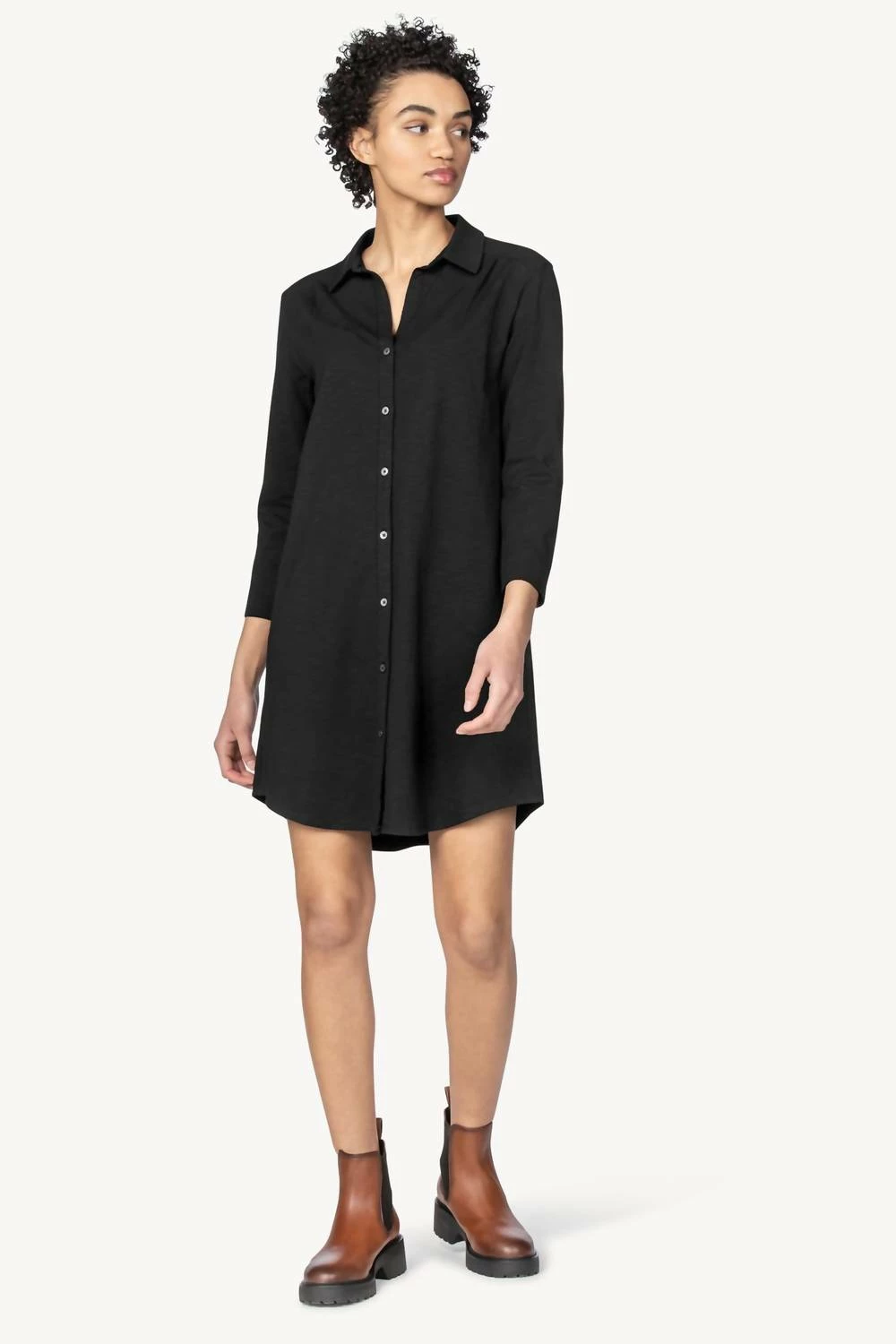 Introducing our brand-new jersey shirtdress. With longer sleeves and a button placket, this is sure to become your go-to dress as we move into the new season. It looks great worn with sandals or boots and can even be worn as a duster, unbuttoned over a tee. We love it for its simple, versatile shape and easy-to-wear, flattering fabric.Hide Details��47% Cotton/47% Modal/6% SpandexFront Length – 36″Side Length – 33.5″All measurements are for size mediumStretchy fabricModel wears a size smallMachine Wash Cold