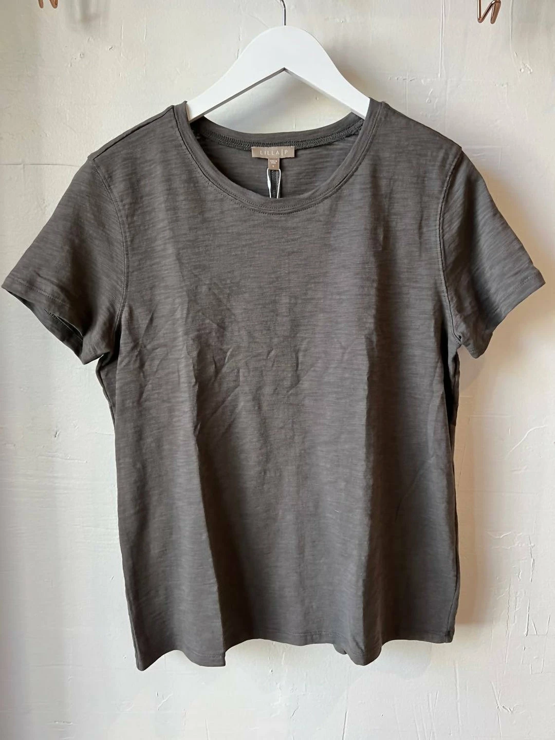 Simplicity at its best, this loose knit cotton slub short sleeve crew neck tee is perfect. With a back seam detail, you will want this tee in more than one color.Length is 25″ on a size medium.Machine Wash