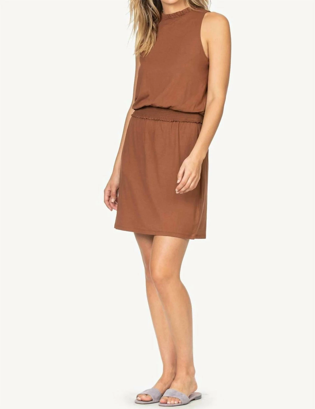 With smocking detail and a ruffle neckline, our jersey dress is incredibly easy to wear. Pair back with sandals or a heel, this dress can be dressed up or worn around town. The skirt of the dress has a bit of ease and the short length lends to the flirty styling of this dress.94% Viscose/6% SpandexLength is 38″ for a size medium.Machine Wash Cold, Delicate Cycle