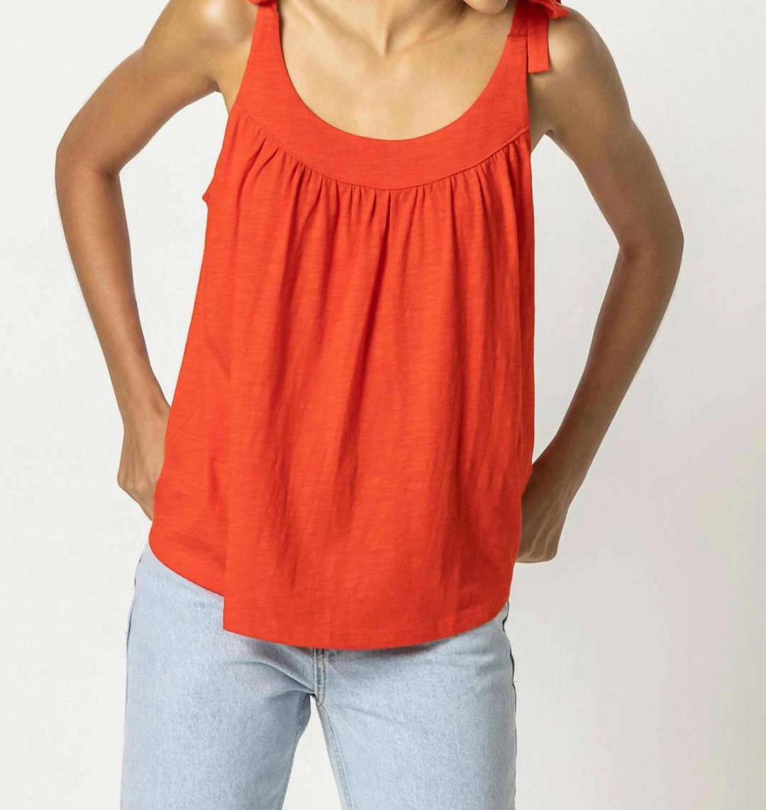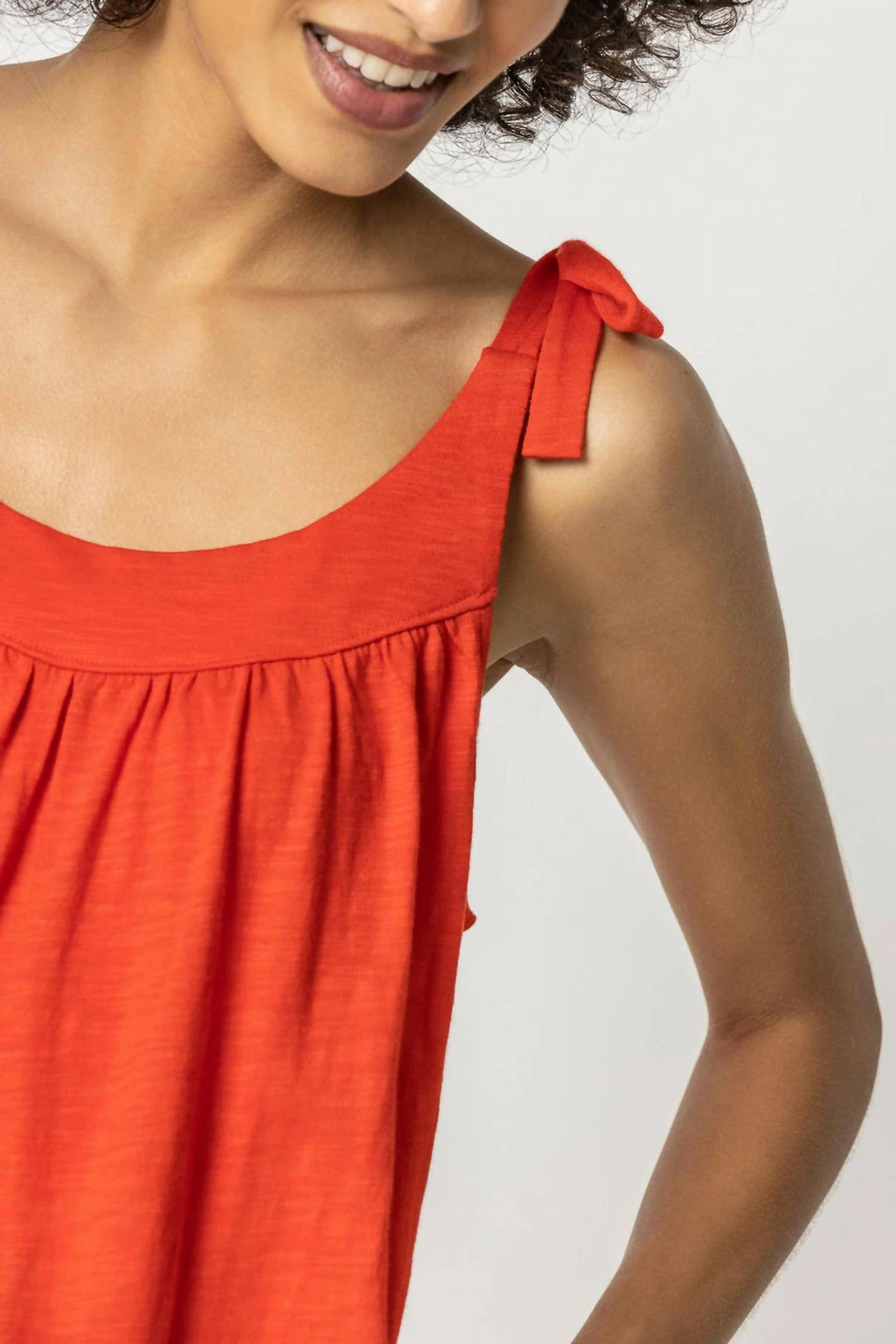 Our best-selling, super soft Flame Modal fabric is back for the new season – and in a mix of bright punchy, colors and neutrals! Our Swingy Tie Strap Tank is feminine and flirty. The straps are adjustable, making it easy to wear. The beautiful shirring and swingy shape allow for movement and comfort.50% Cotton/50% ModalLength – 25″ (size medium)Adjustable shoulder tiesModel wears a size smallMachine Wash Cold