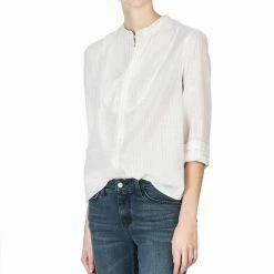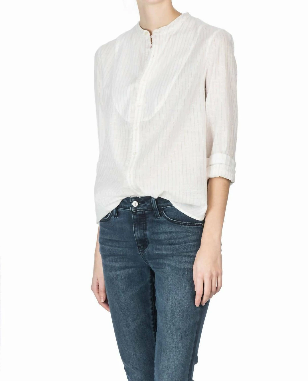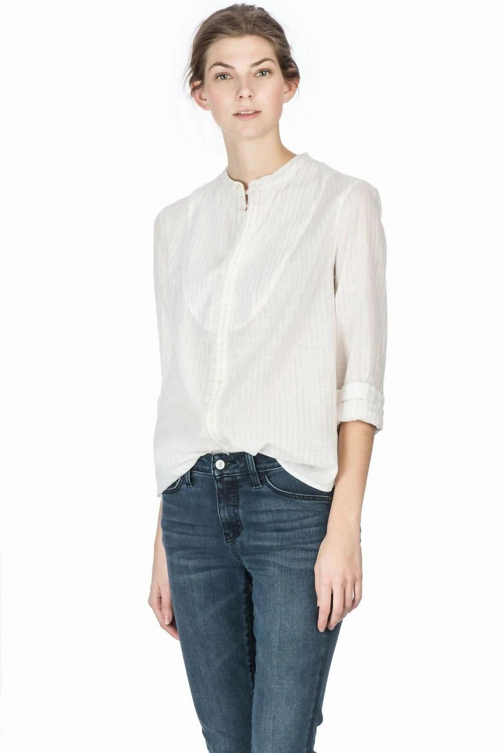 Button down top in gauzy cotton with rosegold metallic pinstripes by Lilla P
