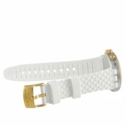 Classic in aesthetic, the Swatch Diaphane Elegolden Watch SVCK1008 showcases that a clean and low-key design can look luxe when styled right. This timepiece has a round plastic case with a shiny gold-tone aluminum bezel, a white dial with a mirror-effect, and gold-colored printed numbers and subdials. The white gold silicone strap also has a luxurious texture and features two white silicone loops and a gold-colored aluminum buckle. This quartz watch is designed for men and women and is water-resistant to 30 meters. Added bonus – this chronograph watch glows in the dark. This Swiss-made Elegolden watch is offered in unworn condition presented in the manufacturer’s box inclusive of papers.