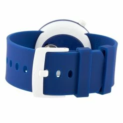 From Swatch Magies d’hiver Collection is this Navypop Unisex Fashion Watch PNN103. This splash-resistant quartz watch has a plastic case measuring 45mm in diameter and 12.50mm in thickness. It is designed with a bi-color style; there is a navy blue dial and silicone strap, and white bezel, hour markers, hands, and strap buckle. This timepiece with a popping blue hue is perfect for giving your outfits a nautical twist.This watch is offered in unworn condition. It is packaged in the manufacturer’s box, inclusive of papers.