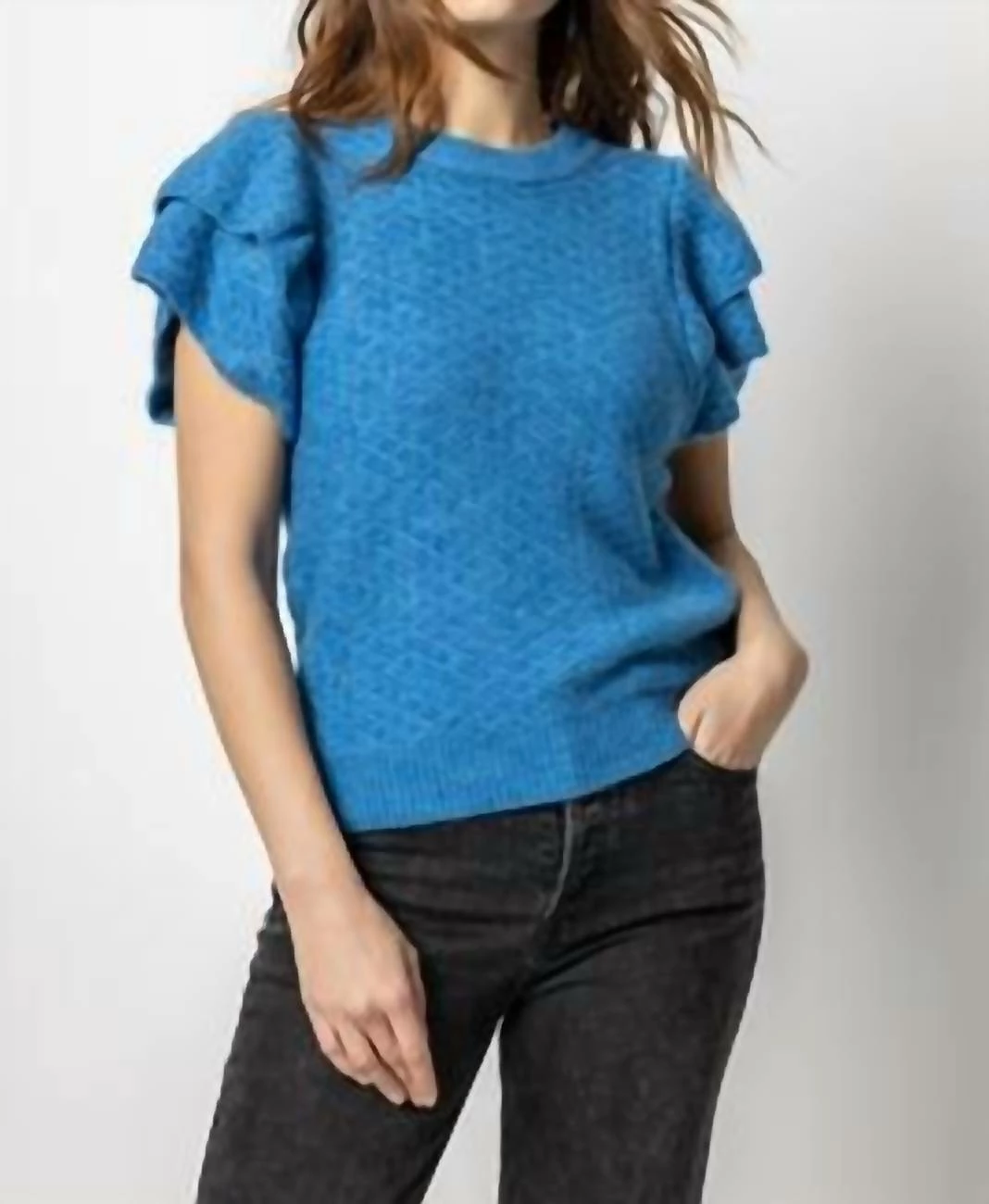 Soft Spun Ruffle Shell Sweater in Electric lue.