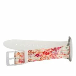 The Swatch Jardin Fleuri watch, reference number SFE102, is a sleek design that maintains the brands sense of fun. Attached to an artistic floral silicone band is a plastic case measuring 38mm. On the striking silver dial, pink hands and dot markers add an additional splash of color. Simple and elegant in design, this analog watch is water resistant up to 30 meters and features a translucent back for added visual impact. This timepiece is offered in unworn condition and includes the manufacturer’s box and papers.