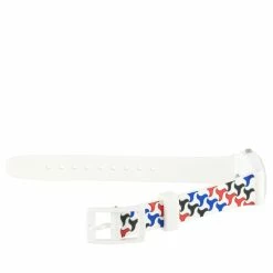 Take your plain tops and neutral outfits to the next level by adding a pop of retro vibe through this Swatch Pattu Retro Pattern Ladies’ Watch LW156. This watch features a striking pattern on its matte white silicone strap. A 25mm shiny white plastic case houses the minimalist white dial with blue stick indexes and red hour and minute hands. This watch has a quartz movement, 3-bar water resistance, and a tang strap clasp. This Swatch Lady Originals Pattu Watch from 2017 A Gala Night Collection is in unworn condition. It comes packaged in the manufacturer’s box, complete with papers.