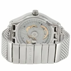 The Swatch Sistem Stalac Automatic Stainless Steel Ladies’ Watch YIS406GB has a fashion-forward finish with its stone-set bezel and attractive stainless steel mesh bracelet. This watch has a 42mm round stainless steel case with white cubic zirconia stones on its bezel. This Sistem51 automatic watch has a non-magnetic movement with 90-hour power reserve. This bejeweled ladies’ watch is from Swatch’s Look Fab Collection and is offered in unworn condition. It is packaged in the manufacturer’s box inclusive of papers.