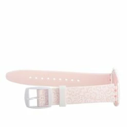 This Swatch Skindentelle 36.8 mm Plastic and Silicone Watch, reference number SVOW102, is a pretty and delicate timepiece. The watch comes with a white plastic case that measures 36.8 mm in diameter. The case is presented on a soft white and pink silicone strap featuring a floral design and plastic tang closure. The silver dial displays hours and minutes. This model is equipped with quartz movement and is water-resistant to 30 meters.This timepiece is offered in unworn condition and includes the manufacturer’s box and papers.
